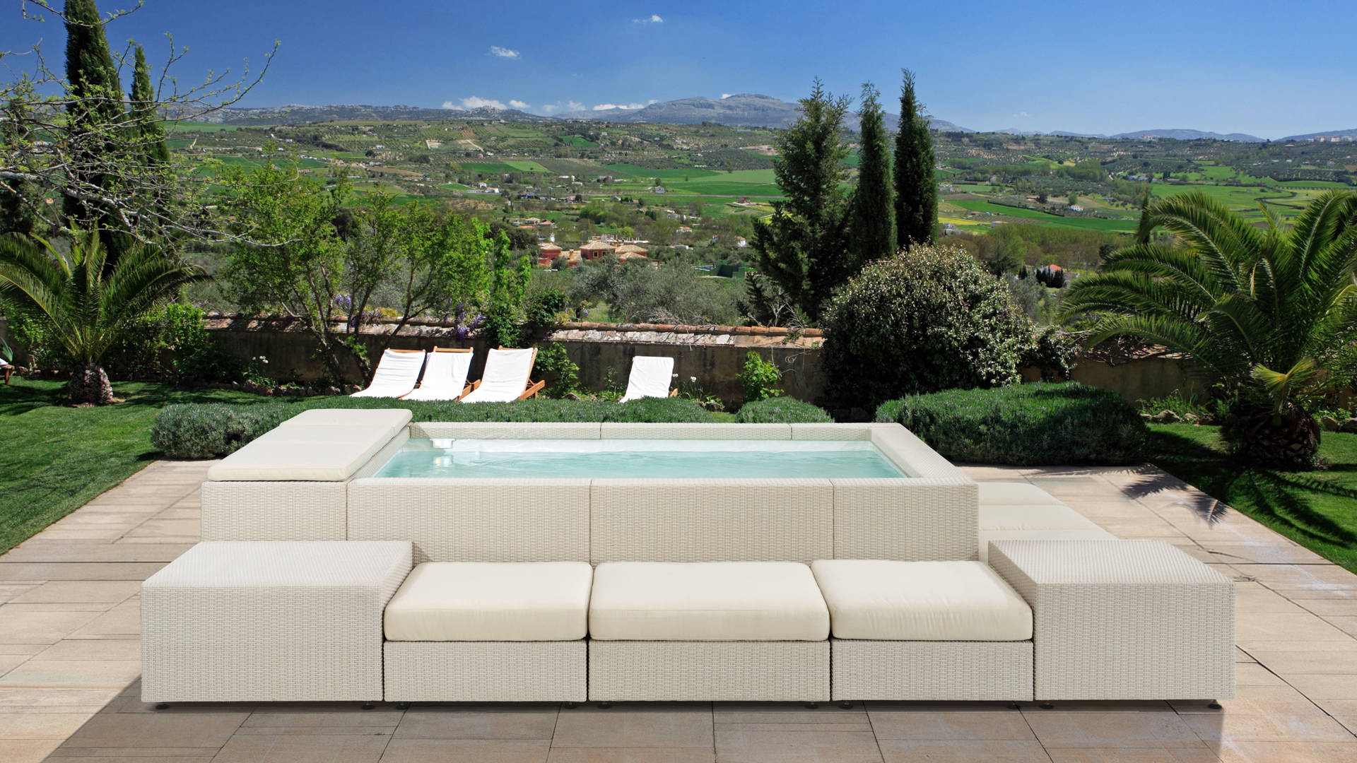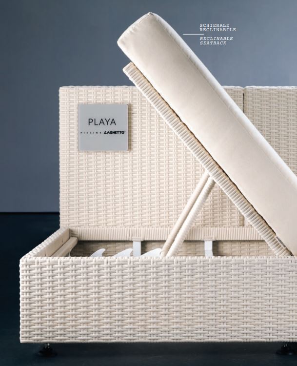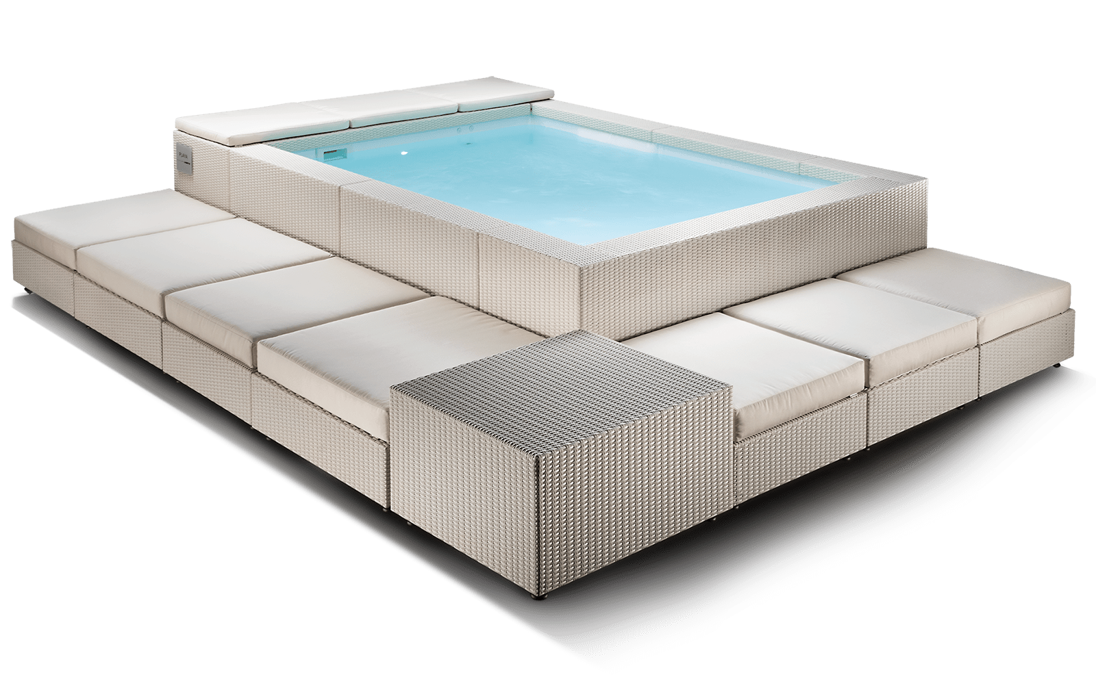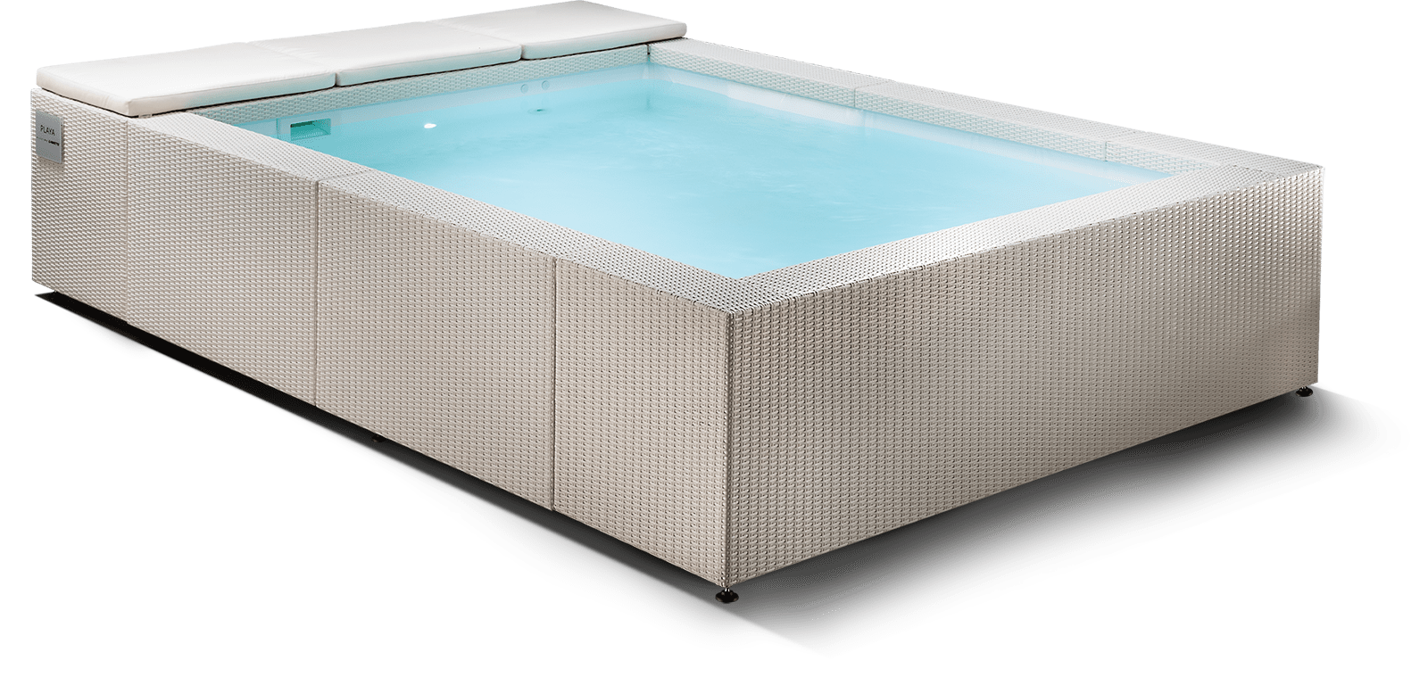 Playa è una piscina di arredo progettata per un completo relax in acqua e a bordo vasca. L'azione dell'idromassaggio, la comodità delle sedute, la bellezza dei pannelli intrecciati, invitano a soggiornarvi a lungo.