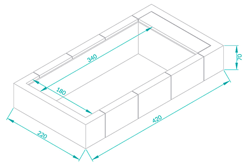 Rivestimento interno vasca in fibre poliesteri e polimeri ad alta resistenza e durata. Struttura in acciaio inox e acciaio zincato a caldo.